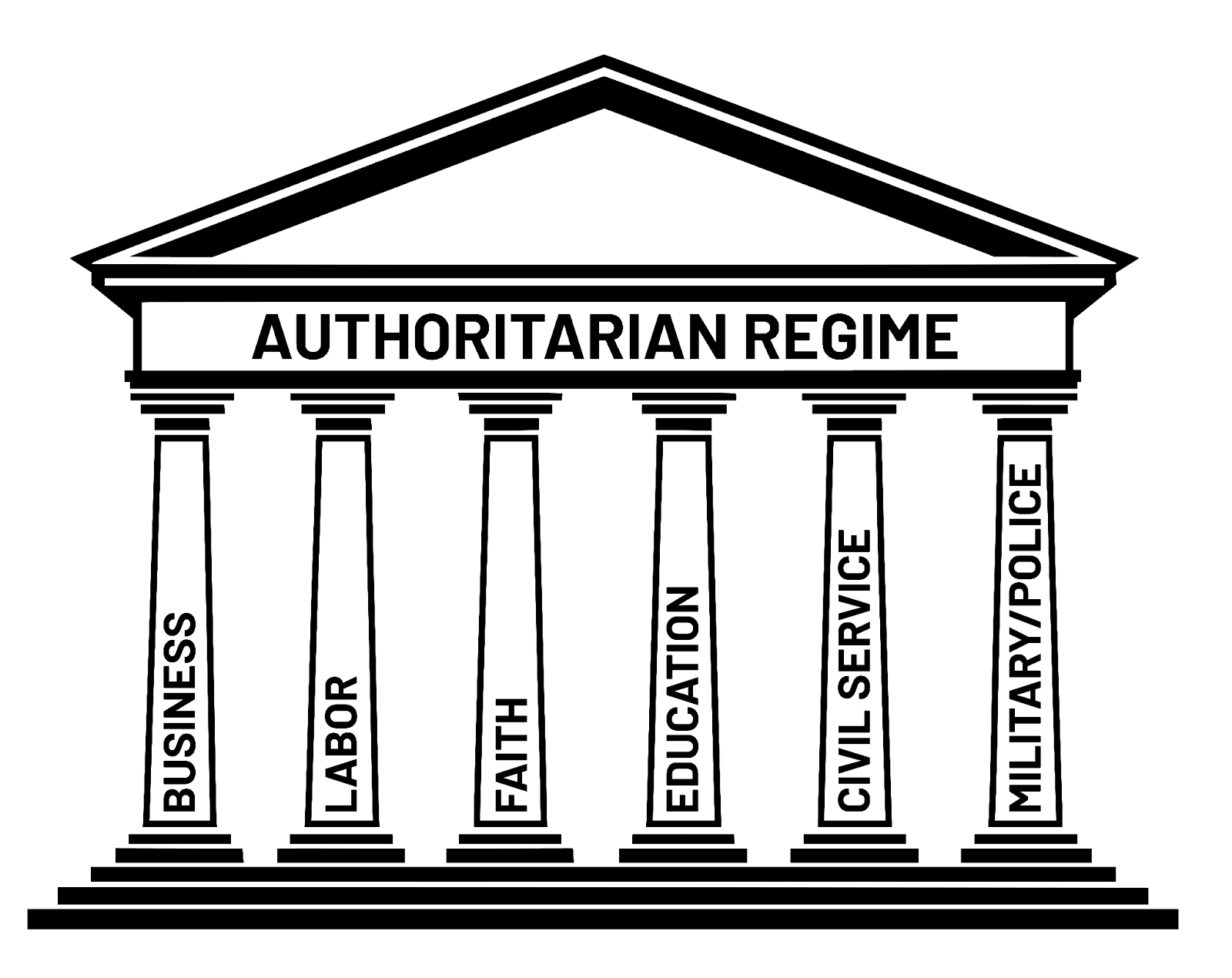 Session 1, The Moment & Your Mission, describes the theory of action, based on the pillars of support for civil society. MAGA has been extorting compliance from organizations that comprise several of these pillars to prop up an authoritarian regime. Media businesses, institutions of higher education, and federal government agencies and their labor unions are prominent examples.
