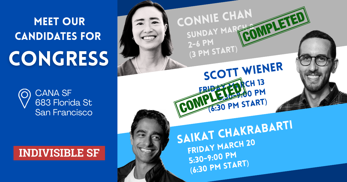 Meet your candidates for Nancy Pelosi’s seat. Learn about their positions on important issues and then vote your values in the primaries! Post-event recordings are available on YouTube.